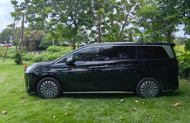 来到车身侧面,侧面整体看上去较为大气,得益于平直的车身造型,俯冲式腰线,这是唯一在设计上贴近D9的地方,加上配备密辐式轮圈,胎壁也较为宽厚。